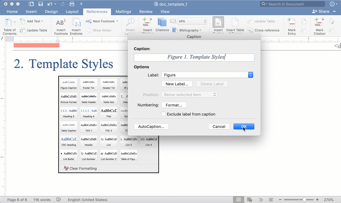 - After generating a figure caption, highlight the caption.